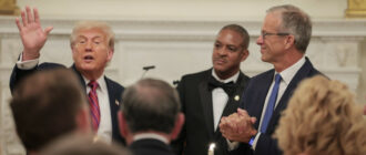 “Не ідеальний час” для вторинних санкцій проти РФ — Трамп після розмови з Путіним Президент США Дональд Трамп за столом поруч із лідером республіканської більшості в Сенаті Джоном Війна