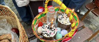 Великдень 2026: як його святкують православні та греко-католики на Хмельниччині За інформацією: Суспільне Хмельницький. Великодні кошики родини, 12 квітня 2026 року, Хмельницький. Суспільне Хмельницький Новини Хмельницького