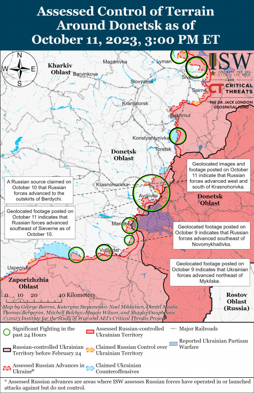 Війська ОСУВ “Таврія” відбилися біля Очеретиного, Кераміка, Бердичів, Степового, Тоненького, Авдіївки, Ласточкиного, Первомайського, Мар’їнки, Побєди, Новомихайлівки. Відзначилися 116-та ОМБр та 79-та ОДШБр. Виявивши за 5–10 км від лінії фронту російські колони, артилерія ОСУВ “Таврія” завдала їм відчутних втрат і не дозволила організовано вийти на рубежі. Лише 90-та ТД ворога втратила за добу близько 800 військовослужбовців і 80 одиниць броньованої техніки. Якщо урок вивчили, то цього разу оточуватимуть зустрічними ударами від Кам’янки та Опитного. Битва обіцяє бути не менш напруженою, ніж Бахмутська. Упевнено можна сказати, що цей напрямок суперважливий для противника, адже сюди перекидають з-під Лимана 41-шу армію, на північ від Авдіївки переміщено 21-шу ОМСБр 2-ї армії противника, зосереджена вона в районі Новоселівки Другої.