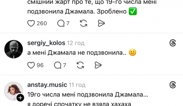 Допис співака Melovin про те, що 19 листопада йому подзвонила Джамала і привітала із потраплянням у лонглист Нацвідбору, породив купу мемів та навіть запустив флешмоб. Колеги почали пародіювати його допис. Otoy, Марина Krutь, Абіє, Василь Байдак, Шугар, Міша Правильний та інші у жартівливій манері стверджують, що їм теж 19-го дзвонила Джамала.