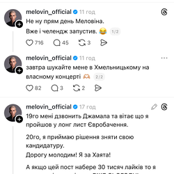 Приводом для жартів також стала фраза Меловіна, що він знімається з Нацвідбору, щоб дати дорогу молодим, зокрема співаку KHAYAT. Іронія в тому, що їм обом по 28 років.