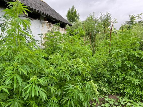 Марихуана, яку чоловік вирощував у себе на городі (фото поліції)