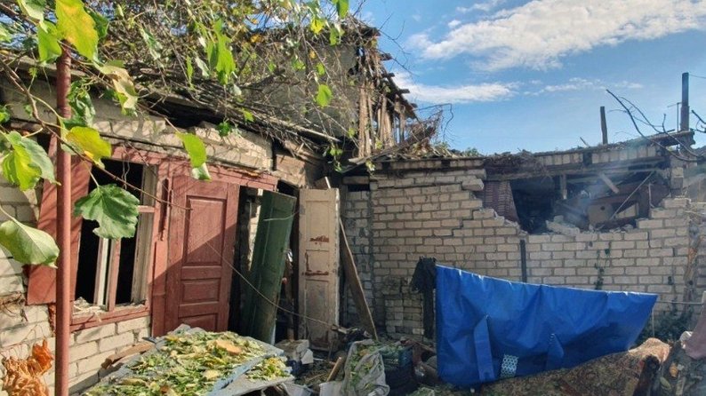 Зруйнована стіна будинку на Херсонщині, наслідки російського обстрілу, жовтень 2025 року. Поліція Херсонської області/Facebook