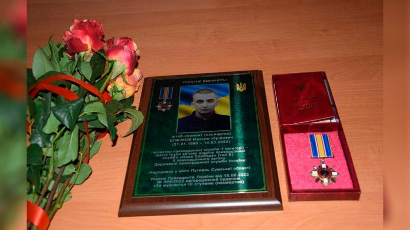 Днями батькам загиблого під час оборони Чернігова прикордонника з Сумщини Максима Єлфімова вручили державну нагороду — орден “За мужність” ІІІ ступеня. Ним бійця нагородили посмертно ще 15 червня згідно з указом Президента. Військовослужбовець загинув у березні минулого року під час виконання бойових завдань з відсічі та стримування агресії збройних сил РФ.