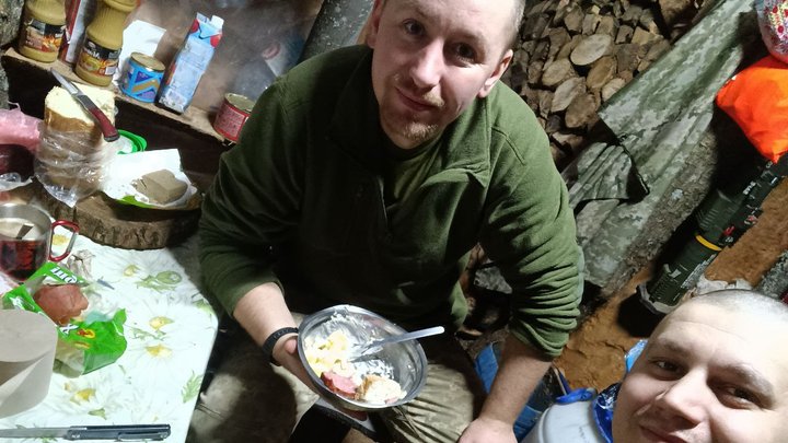 “Олів'є у нас було умовне, приготували салат з тих продуктів, якими нас тут забезпечують з боку держави. Попри те, що у нашому батальйоні майже всі з Буковини, нам не вдалося хоча б на декілька хвилин зібратися за нашим умовним столом, це було неможливо. Ми більше готувалися до нічної варти, тому що вночі ситуація була нестабільна”, — каже військовий.