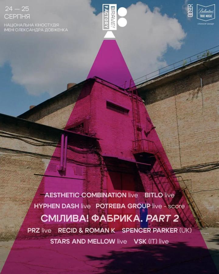 Крім того, 24-25 серпня у столиці триватиме фестиваль Brave! Factory. У створенні Сміливої Фабрики цього року взяв участь аж 51 артист, що отримав роль на одному з п’яти майданчиків — Depo, Garden, Avtotzeh, Pavilion та Auditoria. Лайнап включає також іноземних гостей фестивалю – Reade Truth (CША), Heith та VSK (Італія), Mari.te (Венесуела-Іспанія), PRZ та Spencer Parker (Німеччина).