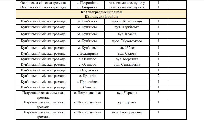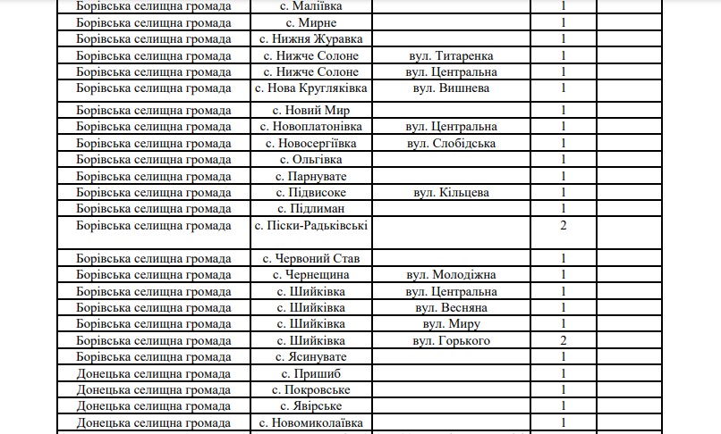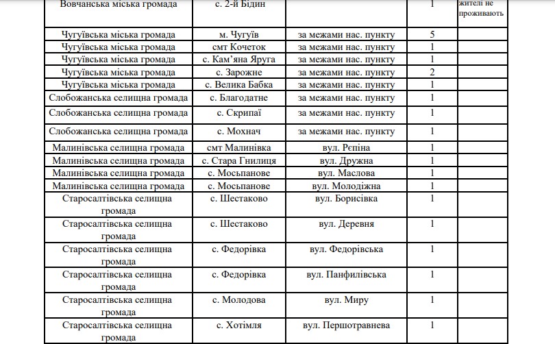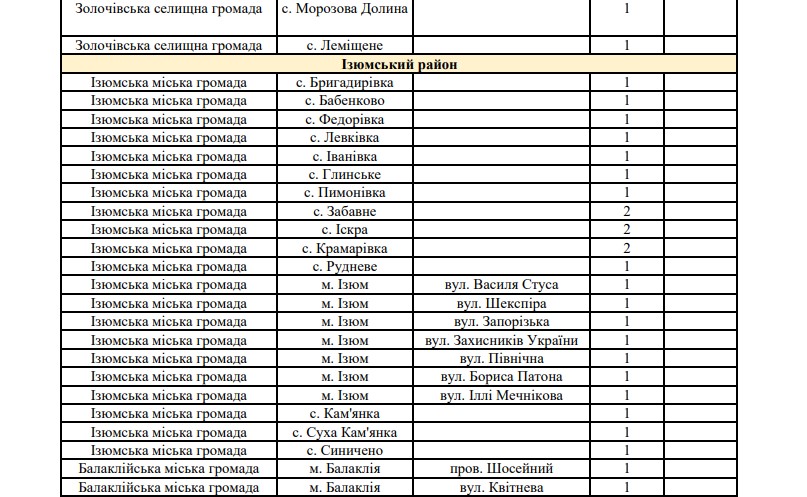 “Першочергово це стосується тих населених пунктів, які перебували під тимчасовою окупацію та де відбувалися активні бойові дії”, — пояснив голова Харківської обласної військової адміністрації Олег Синєгубов.