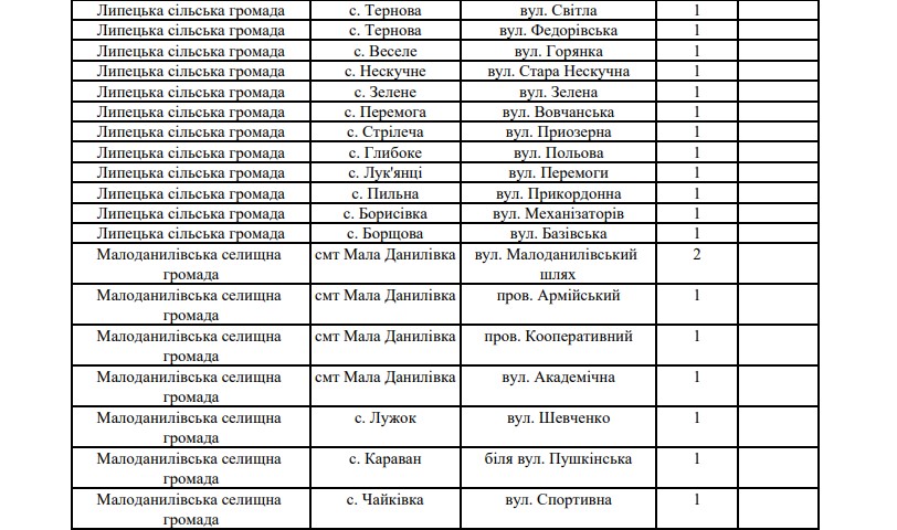 - Харківському районі (Дергачівська міська, Циркунівська сільська, Вільхівська сільська, Липецька сільська, Малоданилівська селищна громади),