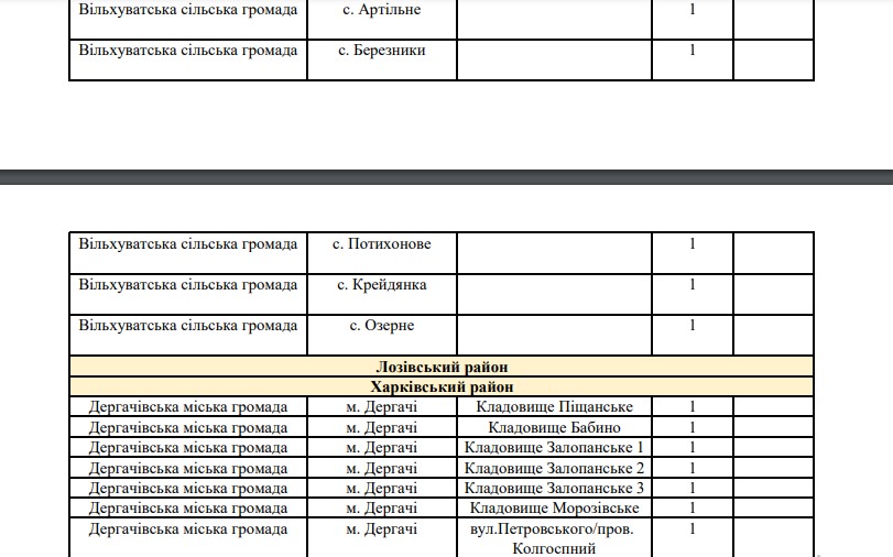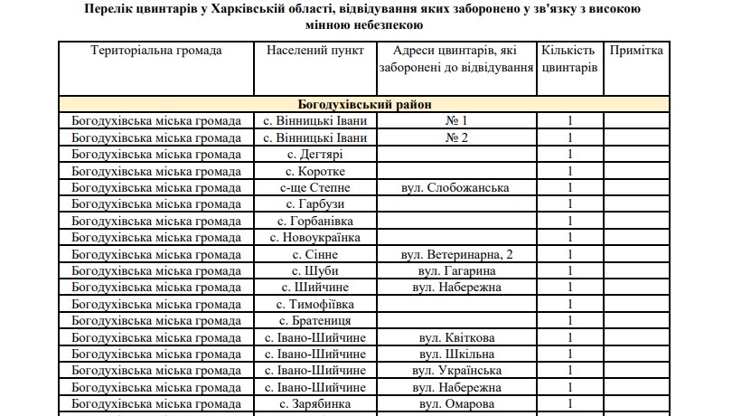 Заборонено відвідувати могили рідних у п’яти районах Харківської області. До цього переліку не потрапили лише Красноградський та Лозівський райони. Не можна ходити на кладовища, які знаходяться у: