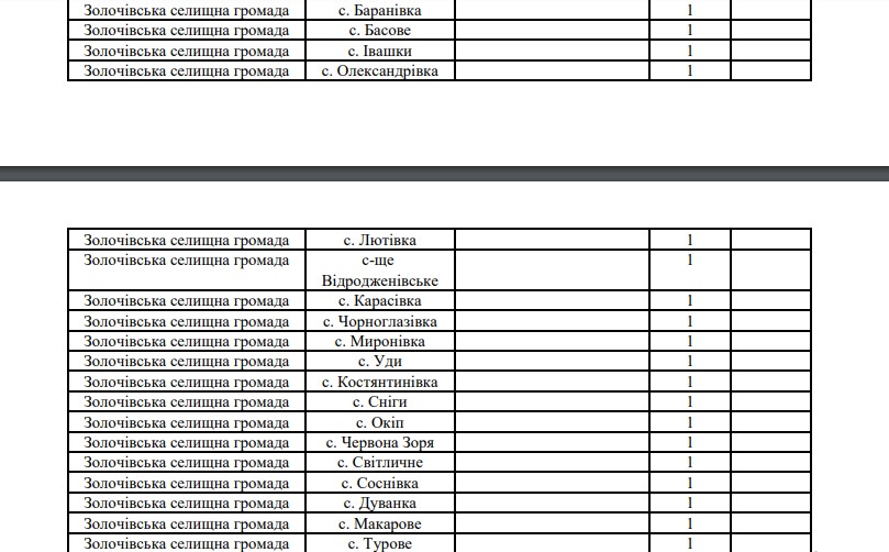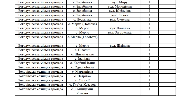 - Богодухівському районі (Богодухівська міська та Золочівська селищна громади),