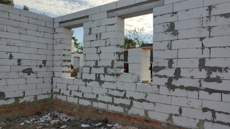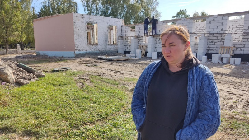 "Колотимо там бетономішалкою, хлопці ось вдвох на лісах працюють, заливають, замазують. Ліси – це ось, по чому ходять. Уже майже всі стіни стоять першого поверху. Робота йде дуже швидко, бригада швидко працює", ― каже робітник підрядної організації Дмитро Заїка.