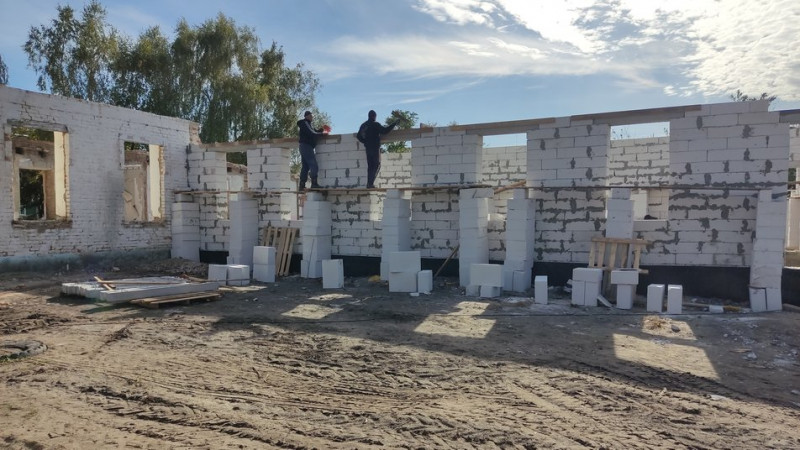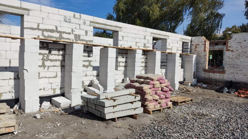 "Виконані роботи з прибудови, у якій буде розташований харчоблок, велика кімната для дітей. Вона вже виконана, можна сказати, на 80% по самих несучих конструкціях. Будемо приступати до заливання армопоясів і будемо робити дах", ― каже виконроб підрядної організації Ярослав Картавий.
