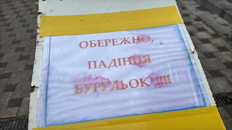 "Ми своїми силами огородили, написали: «Обережно, бурульки». Ми подавали, дзвонили скрізь, куди тільки можна: і в ДСНС, і в аварійну службу, і на 15-80. Зафіксовано, зафіксовано — чекайте. Намагалися самотужки їх позбивати, але сусіди з п’ятого поверху просто не пустили, бо сказали, що це повинні робити комунальники. Тому обгородили, щоб якось забезпечити населенню прохід, щоб люди хоча б обходили", — розповіла власниця зоомагазину Людмила Бурнуковська.