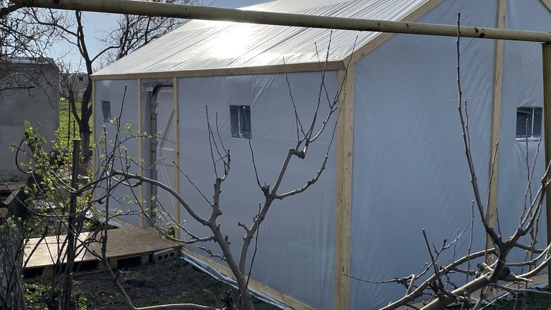 Херсонщина. Модульний будинок, який встановили на подвірї зруйнованого будинку у Посад-Покровському, 1 квітня 2023 Фото: Суспільне Херсон