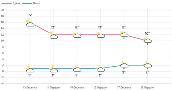 За прогнозами синоптиків, у нічні години температура повітря коливатиметься від 2° морозу до 3° тепла. У денний час повітря прогріватиметься до 10-15° тепла.