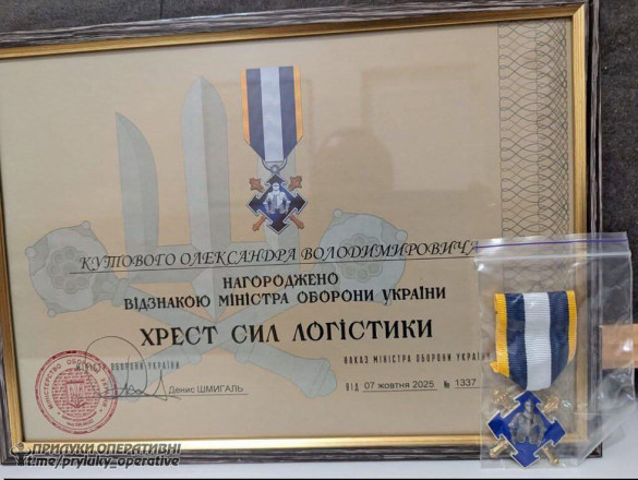 Депутат Ічнянської міської ради, військовий Олександр Кутовий отримав почесну відзнаку Міністерства оборони України — медаль «Хрест Сил логістики».