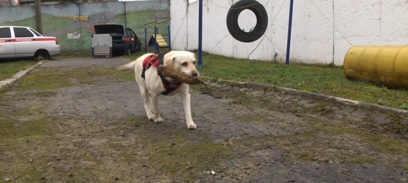 Як розповів рятувальник Володимир, Басі – 9 років і вона успішно виконує завдання, грудень-2025 року. Суспільне Хмельницький