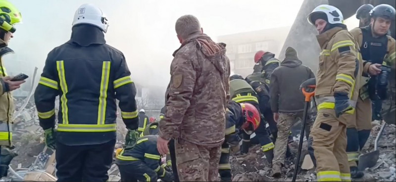 Розбір завалів та пошук людей на місці російського удару. Суспільне Хмельницький