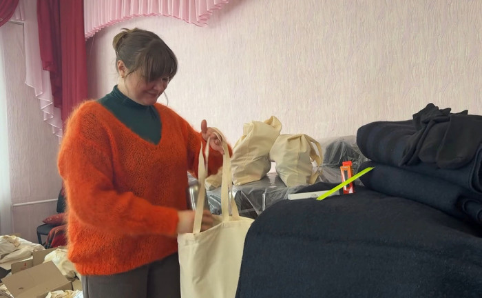 Кожен такий пакунок містить речі, які допоможуть легше пережити холодний період в умовах енергетичної кризи: павербанк, термос, ліхтарик, вовняні шкарпетки, ковдру, шопер-сумку, світловідбиваючу стрічку.