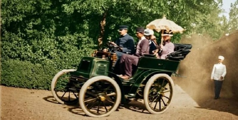 У серпні 1900 року на автомобілі прокатався князь Олексій Романов із родиною і саме їх сфотографували.