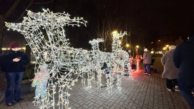 Поруч із ялинкою працюють фотозони, 17 грудня 2025 року, Хмельницький. Суспільне Хмельницький