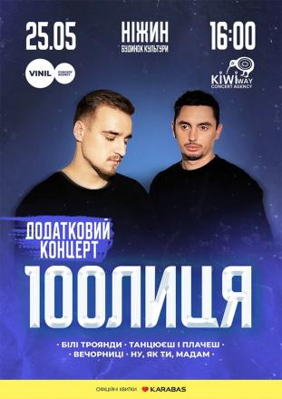 25 травня о 16:00 у Ніжинському Будинку культури відбудеться сольний концерт гурту “100лиця”.