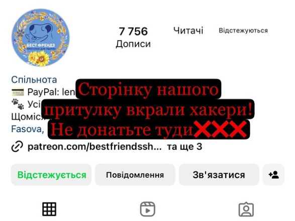 КИЇВ. 2 серпня. УНН. Невідомі хакери зламали Instagram-сторінку притклку для тварин «Бест Френдс», що знаходиться в Макарові Київської області, передає УНН.