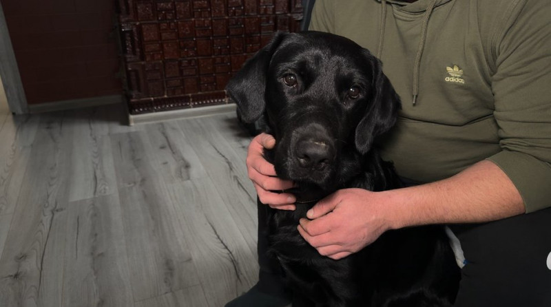 Баді – собака-поводир військового Сергія, який скрізь його супроводжує, Хмельниччина, 17 листопада 2025 року. Суспільне Хмельницький