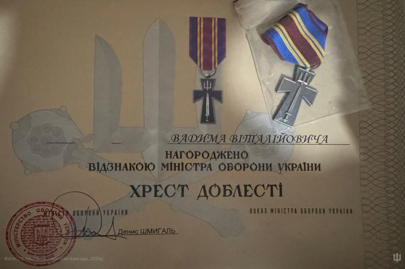 Командир відділення плавальних інженерних машин Вадим служить у 211 понтонно-мостовій бригаді Сил підтримки Збройних сил України (ЗСУ) від початку повномасштабного вторгнення. За виконання бойових завдань на Куп’янському напрямку військовослужбовця нагородили відзнакою Міністра оборони України "Хрест доблесті"Хрест доблесті" — це загальна назва для ряду українських військових нагород, зокрема відомчої відзнаки Міністерства Оборони України, що вручається за мужність та самовідданість, та відомчої відзнаки СБУ, яка має ступені "Хрест Доблесті" I та II ступенів, а також може означати інші відзнаки, як-от "Золотий хрест" Головкома ЗСУ, які відзначають героїзм військовослужбовців та працівників за виняткові заслуги у захисті Батьківщини.", а також відзнакою Президента України "За оборону України"За оборону України" — це відзнака Президента України, заснована у 2022 році для нагородження військових, силовиків, добровольців, волонтерів, чиновників та працівників підприємств, які зробили значний внесок у захист країни під час повномасштабної агресії РФ, проявивши самовідданість і героїзм, що є визнанням їхнього внеску у зміцнення обороноздатності держави.".