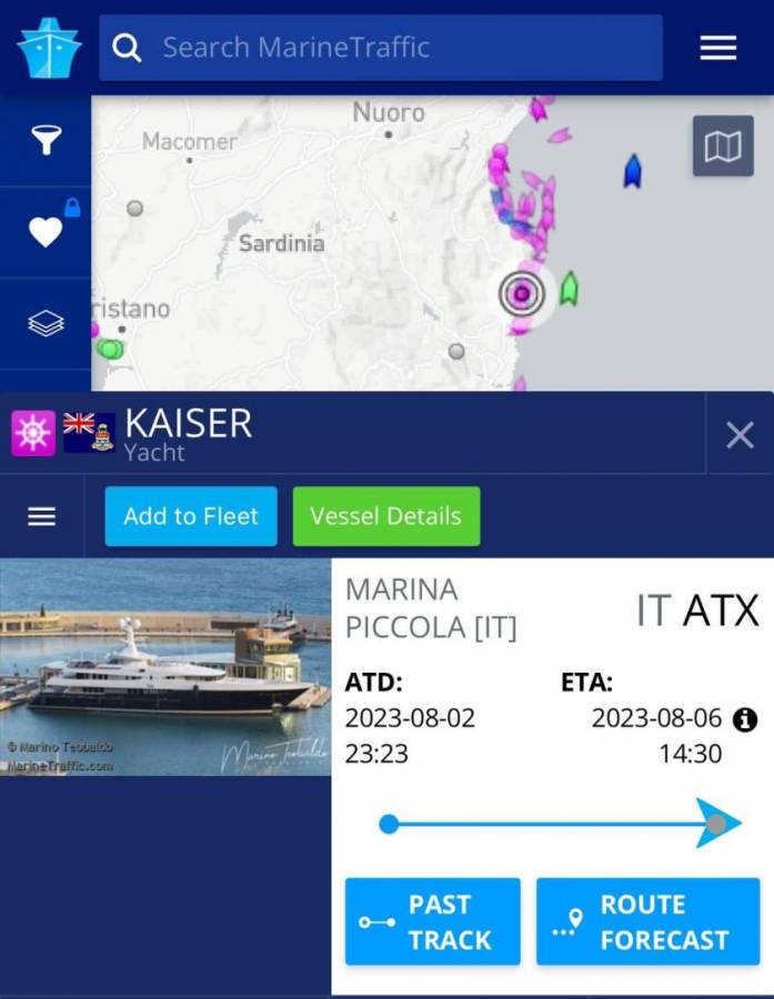 Журналіст додав до свого допису скриншоти результатів пошуку інформації про яхту Ярославського із системи MarineTraffic, в якій є база даних щодо курсування суден. У системі відображена інформація, зокрема, про перебування яхти з 2 по 6 серпня 2023 року. У цей період вона знаходилася на Сардинії.
