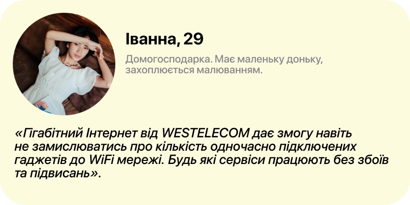 У моїй професійній діяльності високошвидкісне з’єднання відіграє вирішальну роль, оскільки значну частину робочого часу займають онлайн наради з командою та підрядниками. Постійно взаємодію з корпоративною мережею: завантажую об’ємні архіви з фотоматеріалами, швидко отримую доступ до необхідних документів.