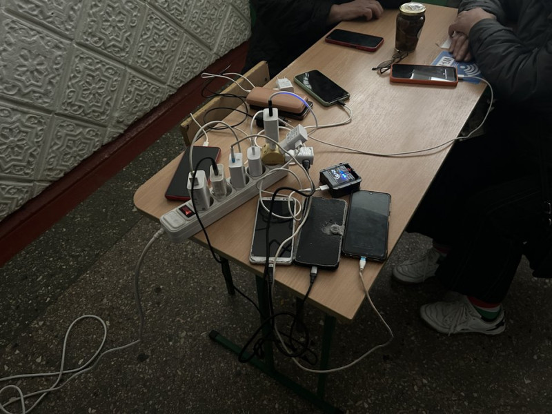 Люди підзаряджають смартфони у Пункті Незламності. Суспільне Полтава