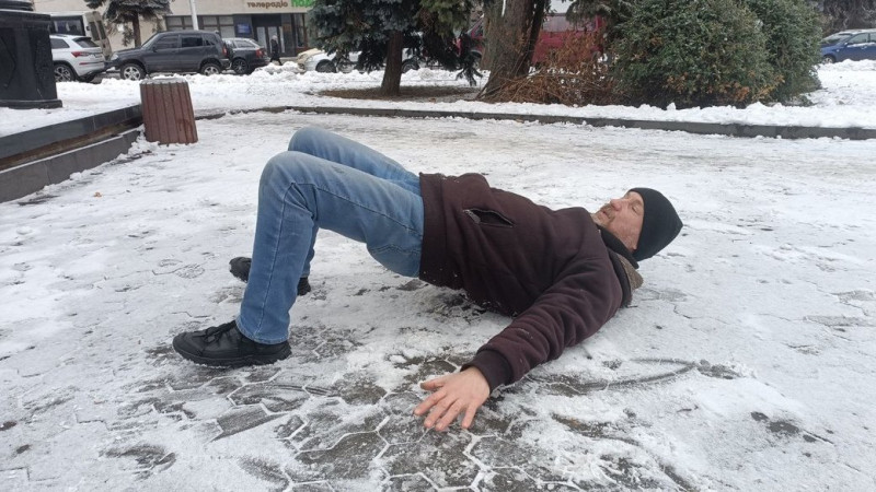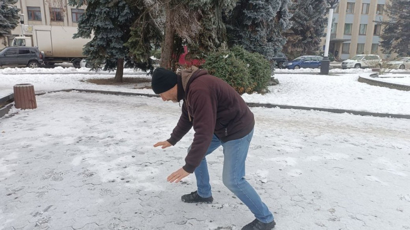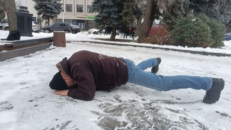 Під час ожеледиці потрібно використовувати правила падіння, щоб не травмуватись, листопад 2024, Хмельницький. Фото: Суспільне Хмельницький