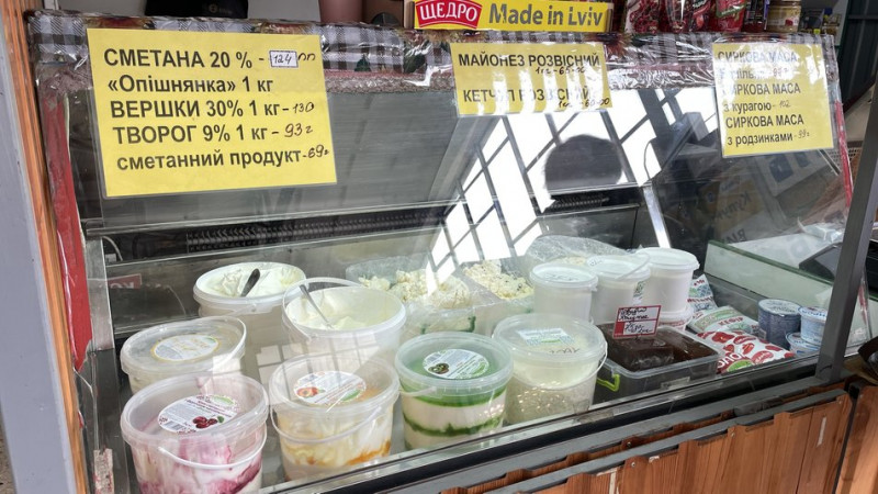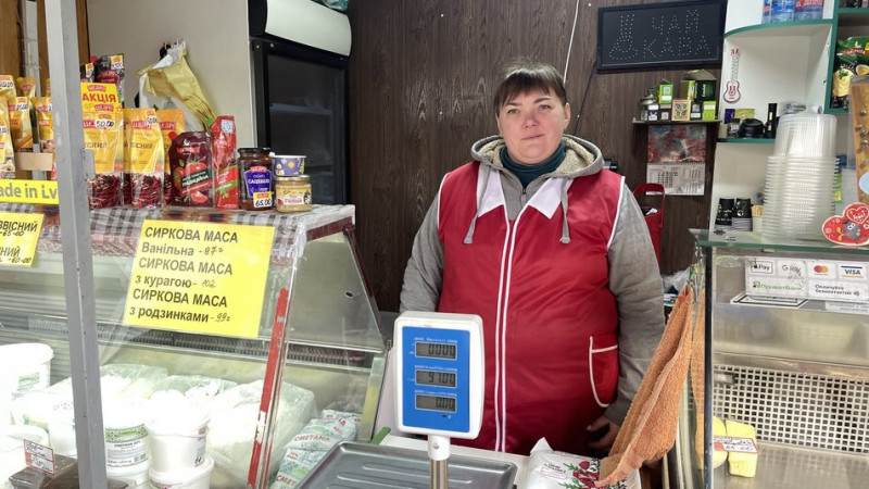"У попиті дуже натуральна сметана, продукт не хочуть дуже їсти, уже тільки на випічку беруть, а взагалі дуже сиркові маси полюбляють. Поки що завод мені не говорив, щоб буде якесь підвищення цін. Люди до цін звикли, зарплати не піднялися і людям важко купляти, будуть купляти в меншому об’ємі – по 300 грамів. Раніше могли собі дозволити пів кілограма, будуть менше брати, але все одно будуть брати", — розповіла власниця крамниці з молочними продуктами Людмила Лісова.