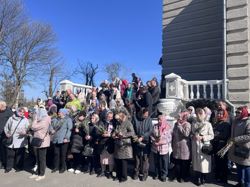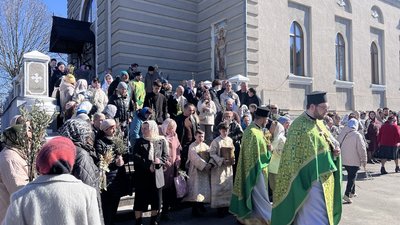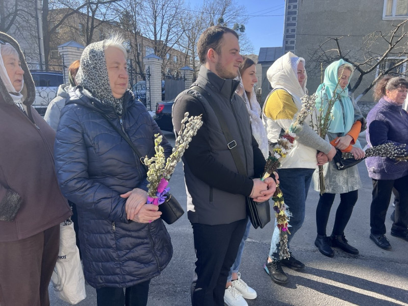 Понад 200 парафіян зібралися біля храму для освячення вербового гілля, 5 квітня 2026 року, Хмельницький. Суспільне Хмельницький