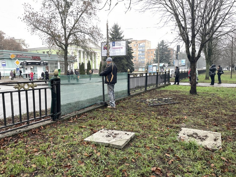 Також пошкоджена огорожа Каштанової Алеї . Суспільне Полтава