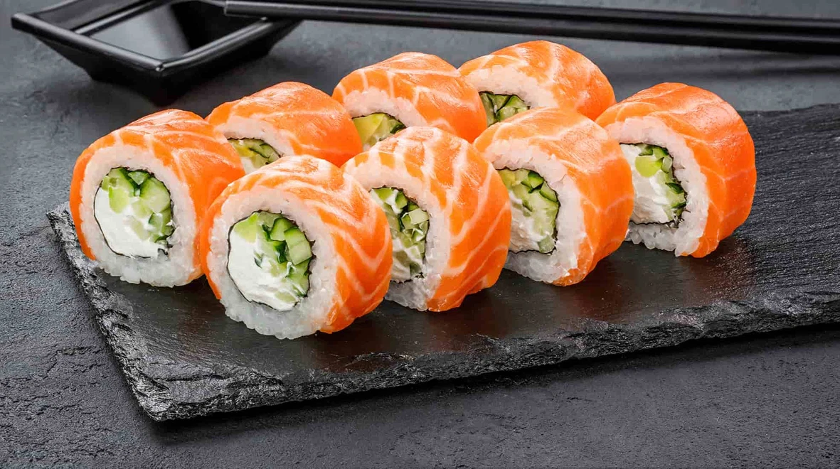 Лосось — найбільш улюблена риба серед українців. Його смак легко впізнаваний, а текстура настільки приємна, що «Філадельфія» автоматично стає ролом №1 у будь-якому меню.