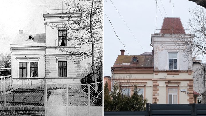 Вілла “Milla” на вулиці Шевченка. Перше фото 1901 року, з архіву Edward Turkiewicz, друге — Суспільне Чернівці