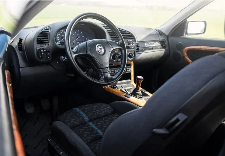 Від стандартного BMW 3 Series E36 варіант Alpina B3 3,2 відрізняється обвісом, колісними дисками, здвоєними вихлопними трубами та золотистою графікою на боковинах. У салоні встановили спортивні кермо та крісла.