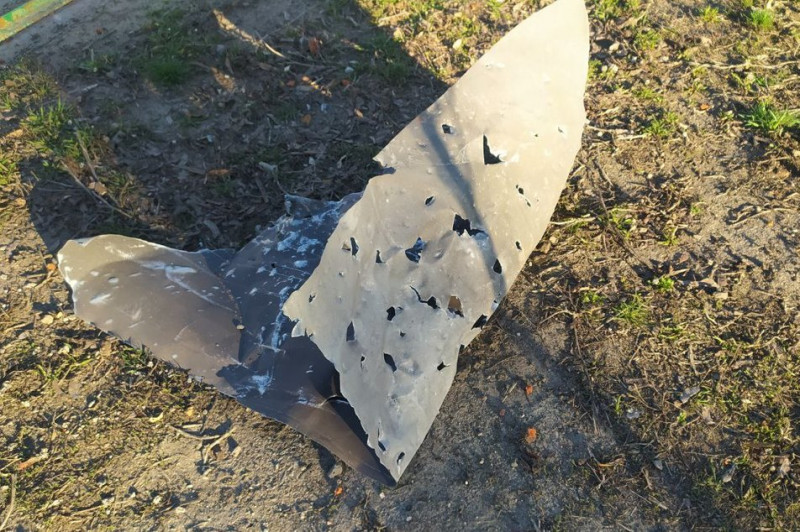 Хвіст від міни на території кладовища №17 у Харкові. 28 березня 2023 року. Фото: В’ячеслав Мавричев/Суспільне Харків