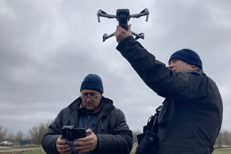Щотижня волонтери громадської організації "Євро Харків" випробовують створені власноруч маскувальні сітки на полігоні: оглядають, чи видно їх із квадрокоптера на різних висотах.