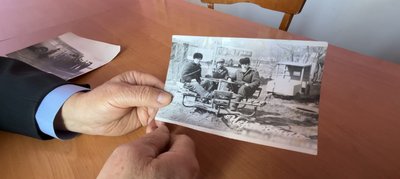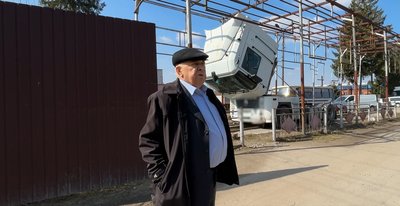 Михайло показує фотографію, на якій є автобус, що мав дозвіл в’їжджати до житлового приміщення. З архіву Михайла Ніколайчука
