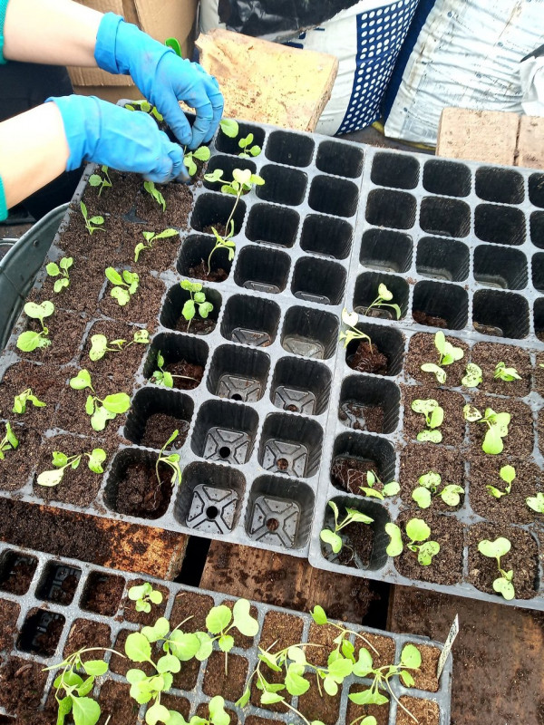 Процес пересаджування молодої розсади в окремі ємності, Хмельниччина. Іванна Білоус