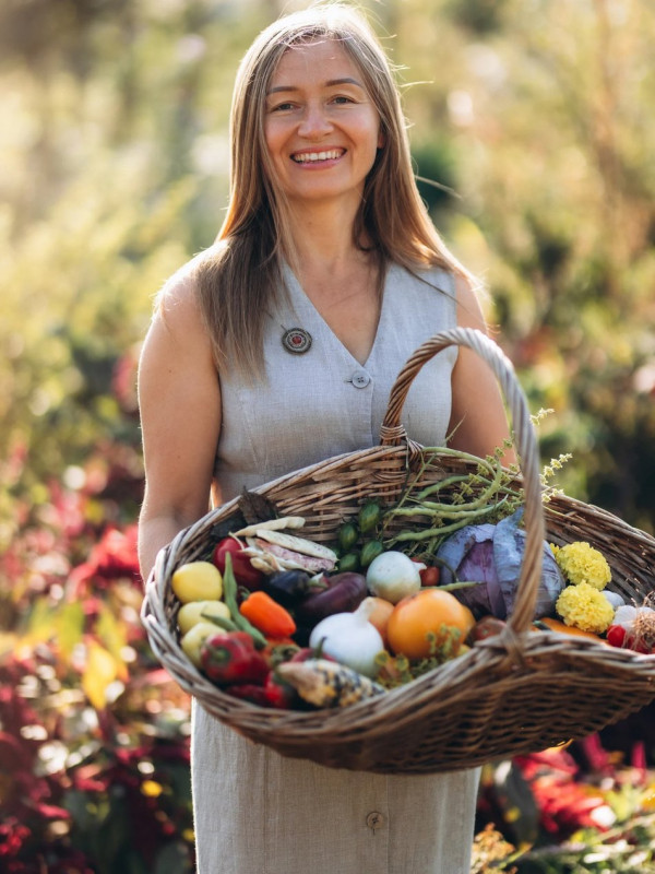 Іванна Білоус із врожаєм овочів, Хмельниччина. Іванна Білоус