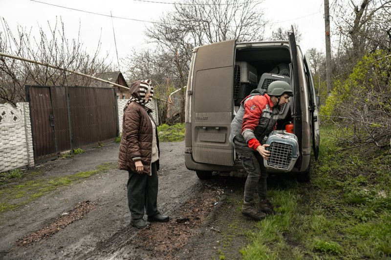 Люба Голубєва збиралась у Бахмут в евакуаційну місію з колегами по Kyiv Animal Rescue, але радше як попутниця. Вона хотіла провідати свого чоловіка-військового. Проте так не сталося — чоловік загинув. Зрештою, Люба вирішила все одно їхати на схід. Щоб не сидіти вдома в траурі, а щось робити, пояснює вона. “Щось робити” — це витягати звідти тварин.