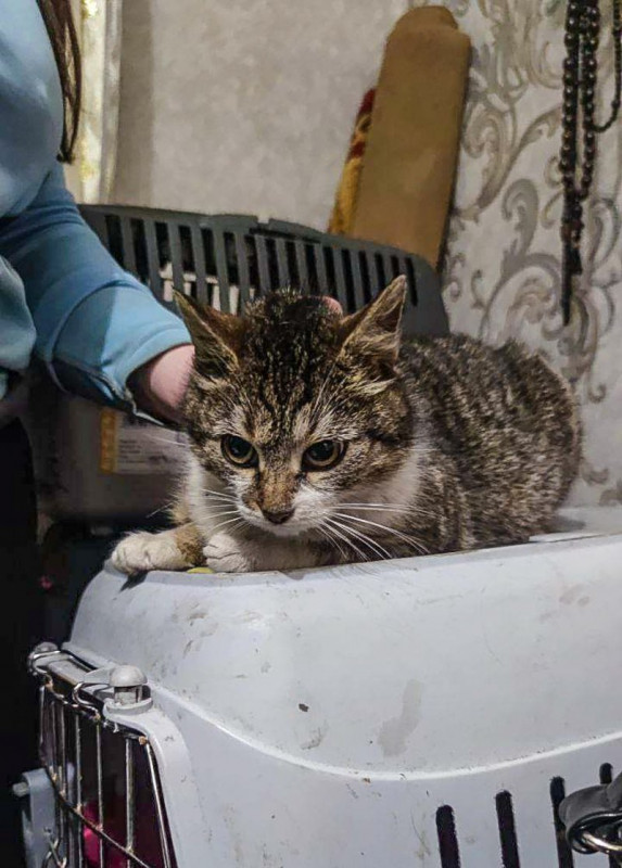 Жінка з Часового Яру заздалегідь готувалася до виїзду. Коли в місті оголосили евакуацію, завезла фуру, склала речі, забрала своїх котів і всіх котів з будинків поруч — загалом більш ніж двадцять. Переносок у неї не було, тож поклала їх у картонні коробки. Так і поїхала. Залишити довелося п’ятьох вуличних, які розбіглися. Але згодом їх відловили сусіди, і вона звернулася до нас, щоб ми їх вивезли.