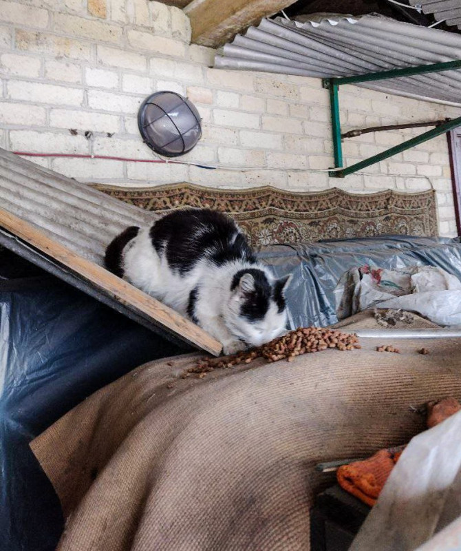 — Коти важать, як пух, бояться відкритих просторів, — каже Фійка. — Звичайно, в місті є люди, які їх підгодовують. Військові або місцеві. Місцевих, що опікуються тваринами, небагато, але вони помітні й тримаються міцно.