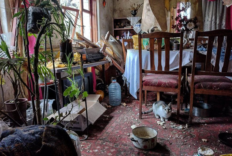 На цей будинок вони натрапили випадково. Мали адресу, за якою їх попросили забрати двох котів. Коли приїхали на місце, виявилося, що дім розбомбили, і сусідній теж. А коти звідти біжать в інший дім, через дорогу.