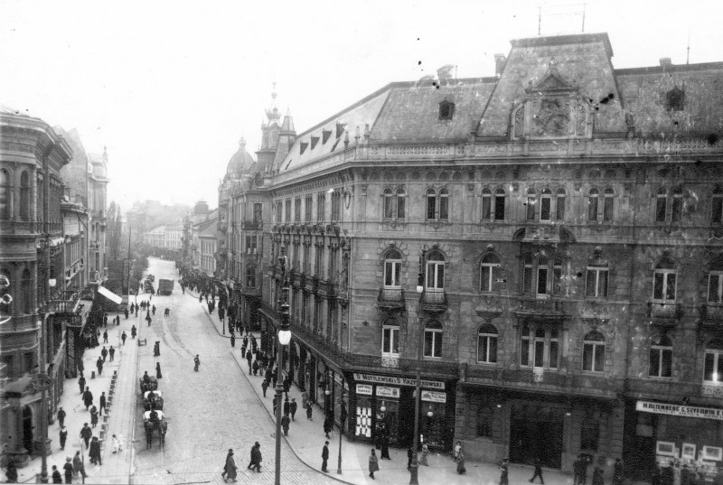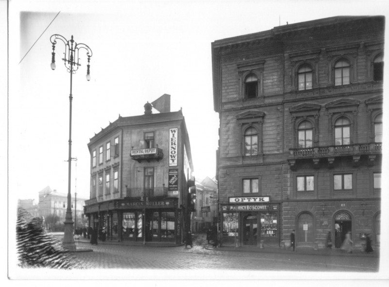 Продовження нашої розповіді про Львів, якого вже нема, розпочнемо з будинку на площі Галицькій, 15, де нині розташовані аптека і оптика «Біомед», а також телерадіокомпанія «Люкс». До речі, на місці нинішньої оптики понад сто років тому теж була оптика Маврикія Босковіта, яку видно на світлині початку XX століття.