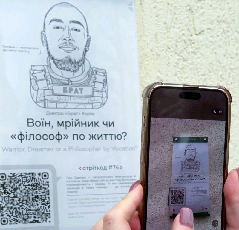 Інформаційна табличка з QR-кодом про загиблого захисника Дмитра Коряка. Суспільне Полтава